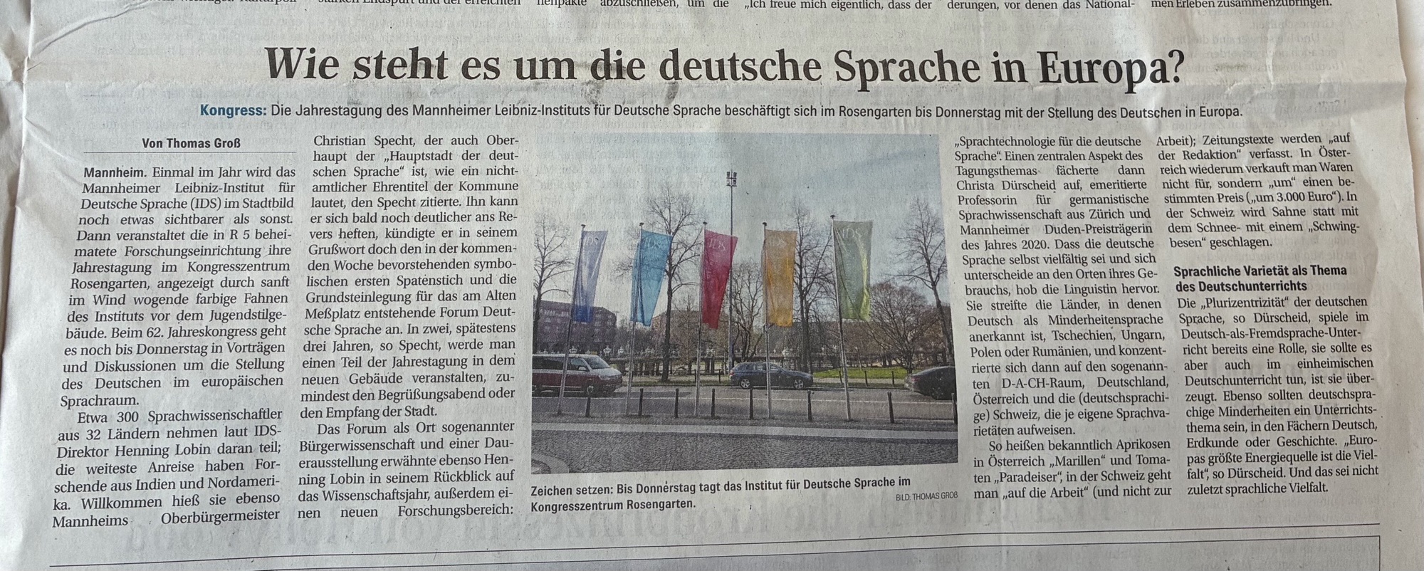 "Mannheimer Duden-Preisträgerin Dürscheid über Sprachvielfalt" in: Mannheimer Morgen (21.12.21)